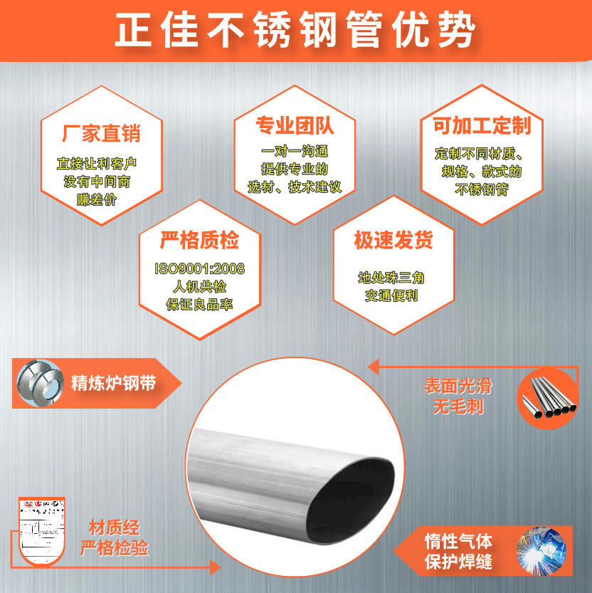 佛山正佳316l不銹鋼橢圓管廠家,專業定制不銹鋼橢圓管,不銹鋼平橢管,316不銹鋼管,304不銹鋼管;規格齊全,廠家直銷,歡迎工程商、經銷商前來咨詢不銹鋼裝飾管