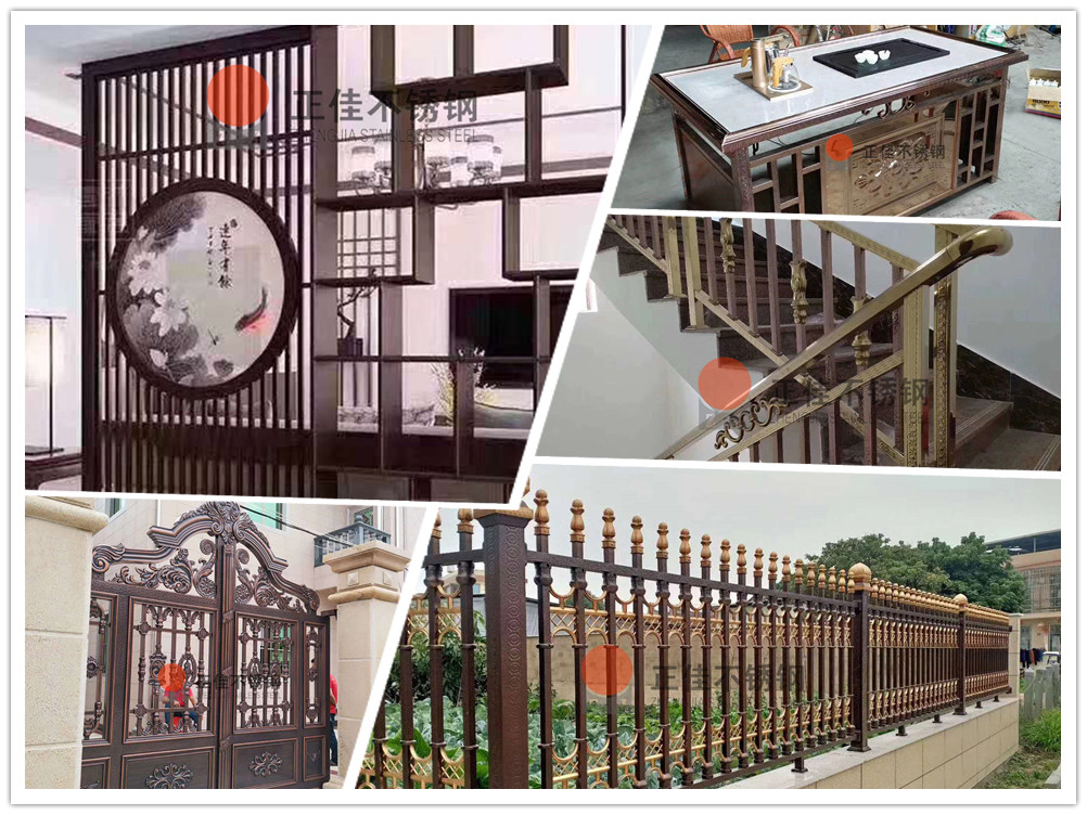 不銹鋼花紋管具有強大的機械性能,鍍膜層牢固且色彩豐富,花紋款式新穎多樣,裝飾效果風格不一等優異特性,發展前景廣闊。諸多優點使其在裝飾行業里深受歡迎。科技的革新,技術的創新,使得彩色不銹鋼花紋管被廣泛應用于家居裝飾、工程裝修、家具等行業,且增添了色彩藝術的效果。